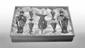 禮盒內(nèi)是金黃綢緞環(huán)抱兩瓶248ml國花瓷12年喜慶裝,以及一套酒具,酒具是一個分酒器及4個紅色小酒杯組成的五件套。紅黃相襯,再以瓶身上的綠葉為點綴,簡直像藝術(shù)品般美不勝收。兩瓶248ml國花瓷12年也寓意好事成雙,鴻運雙至。
