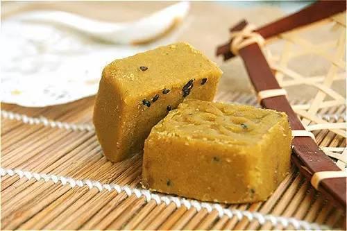 綠豆糕是著名的漢族特色糕點之一。綠豆糕按口味有南、北之分,北即為京式,制作時不加任何油脂,入口雖松軟,但無油潤感,又稱`干豆糕`。
