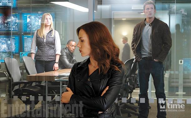 在曝光的劇照中,有一張記錄了美國隊(duì)長和獵鷹位于神盾局的辦公室,斯嘉麗·約翰遜飾演的黑寡婦與他們相隔一扇玻璃門,側(cè)著腦袋默默觀察他們的動靜。另一張圖片中,美國隊(duì)長和鋼鐵俠在同一個辦公室相對而坐,兩人臉上的表情并不輕松。《娛樂周刊》在最近的文章中曝光了這兩張劇照背后的具體情節(jié):