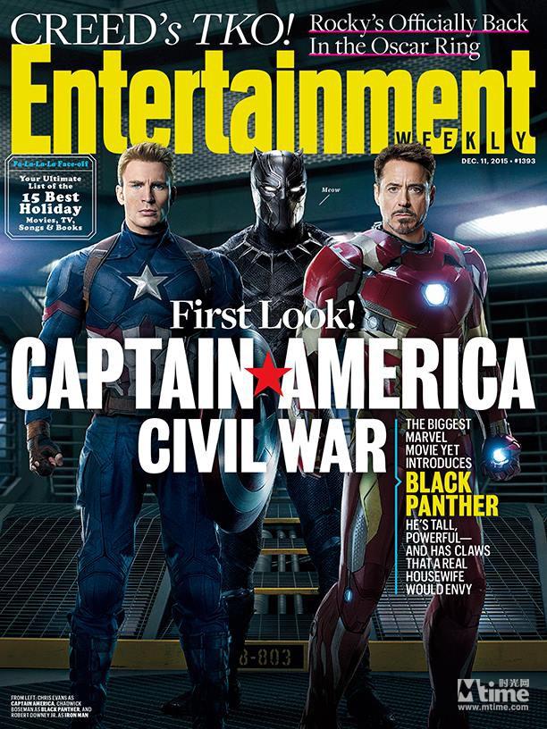 昨日曝光的《娛樂周刊》封面中黑豹站在美隊(duì)和鋼鐵俠之間,旁邊那句擬聲詞“喵”自帶萌點(diǎn)