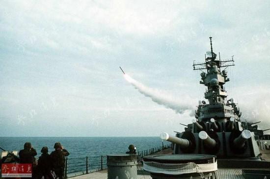 圖為美海軍“威斯康辛”號戰(zhàn)列艦(BB-64)向伊軍目標(biāo)發(fā)射“戰(zhàn)斧”巡航導(dǎo)彈,攝于1991年1月18日。