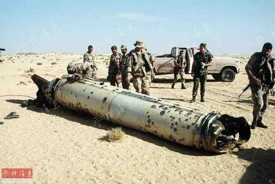 圖為沙漠風(fēng)暴行動期間,美軍士兵在檢查被“愛國者”防空導(dǎo)彈攔截下來的伊軍“飛毛腿”戰(zhàn)術(shù)導(dǎo)彈殘骸。
