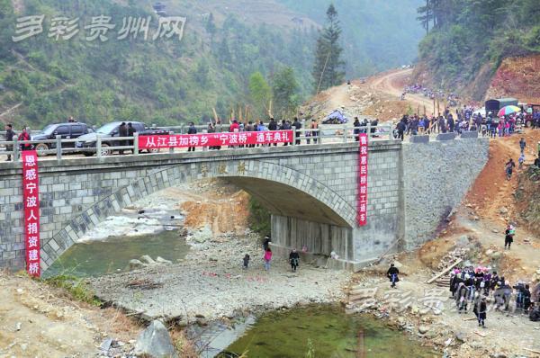 2014年8月,經(jīng)媒體報(bào)道,加榜鄉(xiāng)得到寧波愛心人士捐款70余萬元,同年9月開始建橋,4個月后“寧波橋”修建完工。這座愛心橋縮短了加榜鄉(xiāng)擺黨村、大平村等17個村群眾的距離,也連通了從江人與寧波人的心。