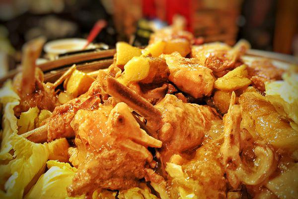冬季的臺(tái)灣解饞大咖,非姜母鴨莫屬。姜母鴨火鍋,也稱(chēng)功夫鍋。用麻油爆炒過(guò)的姜母(也稱(chēng)老姜)和飼養(yǎng)兩年以上的老公鴨,以同等的比例放入高湯中,燉煮一小時(shí)以上。因?yàn)楸壤嗤,所以姜的味道沒(méi)有那么濃,淡淡的味道附著在鴨肉上,為鴨肉增添了一絲香氣。正宗臺(tái)灣的味道是要加一些米酒,隨著麥芽的蒸發(fā),酒的香氣留在鍋內(nèi),使得鍋底的湯汁更加濃郁,味道更香醇。