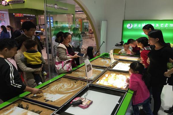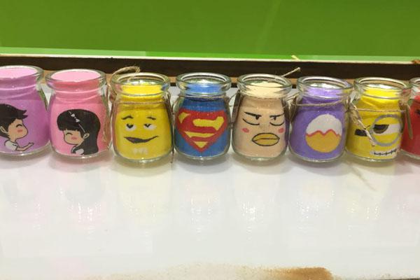 走進(jìn)莎士比亞沙畫(huà)藝術(shù)館,就被孩子們的笑聲所吸引。場(chǎng)館雖然不大,工具都很齊全,在周末,人會(huì)更多,大人帶小孩去的,情侶一起去體驗(yàn)的,其樂(lè)融融。在場(chǎng)館的一角,一堆孩子們聚集在一起,在老師耐心指導(dǎo)的基礎(chǔ)上,發(fā)揮自身的想象力,無(wú)論是可愛(ài)的大象,威武的獅子,令人膽寒的蟒蛇,都能在沙畫(huà)中活靈活現(xiàn)...一起來(lái)的情侶當(dāng)然就比較喜歡有愛(ài)的畫(huà)面,在兩人共同努力下,完成一幅牽手的沙畫(huà),紀(jì)念難忘的一下午,是不是特別有意思?當(dāng)手法嫻熟之后,可以考慮體驗(yàn)更加精細(xì)的沙瓶畫(huà),把自己喜歡的圖案在瓶子里一點(diǎn)點(diǎn)勾勒,把這一點(diǎn)小小的心意送給自己愛(ài)的人。
