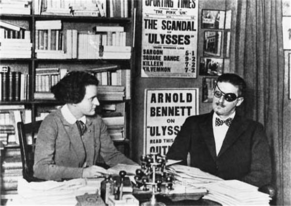 第一任主人絲微雅·畢齊(Sylvia Beach)與喬伊斯在書店中。