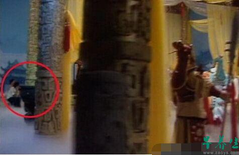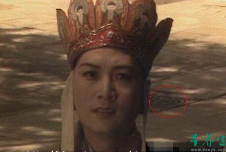 這是《西游記》續(xù)集中的一幅劇照,畫紅圈處竟然露出一只手,而且手上還帶著一副手表