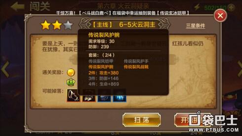 當(dāng)你進(jìn)入【主線6-5火云洞主】時(shí),不要輕敵,對(duì)手戰(zhàn)力達(dá)到四萬(wàn),你可從背后攻擊,使用連招技能,注意躲避,使得對(duì)手來(lái)不及反攻!本關(guān)卡的通關(guān)獎(jiǎng)勵(lì)有金幣+294,經(jīng)驗(yàn)值+1553,還有部分可掉落的裝備。