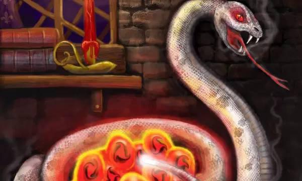 火灰蛇是一種眼中閃爍著紅光的蛇,身體細瘦,灰白色,會從無人照看的火焰灰燼中鉆出來。它的壽命只有一小時,在這一小時里,它會盡力找到一處黑暗、隱蔽的地方產(chǎn)卵,隨后身體支離破碎、化作塵土。雖然若是見到它,你一定不會想讓它產(chǎn)卵,不過在電影里,我們應(yīng)該能看到火灰蛇的出生。