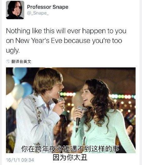 跨年的時(shí)候“斯內(nèi)普教授”還發(fā)了推特調(diào)侃。