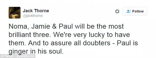 《哈利·波特與被詛咒的孩子》的劇作者杰克·索恩回應稱:「諾瑪、杰米和保羅將是最出色的三個人。我們非常榮幸可以請他們三位來出演舞臺劇。以及得告訴所有的持懷疑態(tài)度的人——保羅的骨子里是紅色頭發(fā)的(內心像羅恩·韋斯萊一樣)。」