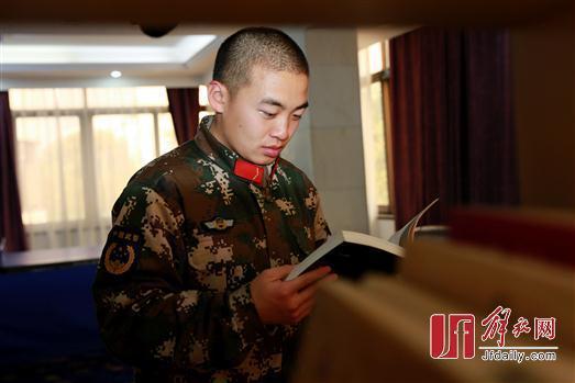 新兵小阮在認(rèn)真讀書(shū)。劉浩/攝