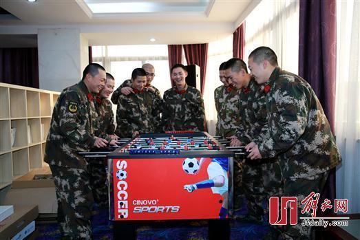 戰(zhàn)士們進(jìn)行桌上足球的對(duì)抗。劉浩/攝