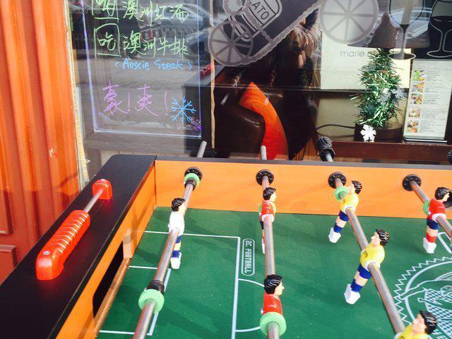 這一次學(xué)酒的地點(diǎn)在澳洲酒莊Aussie wine bar,門口有可愛(ài)的桌上足球