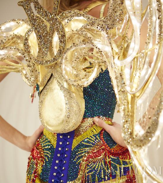 璀璨煙花環(huán)節(jié)為本次盛典帶來了完美耀眼的結(jié)局,同時,延續(xù)了維多利亞的秘密的一貫傳統(tǒng),為施華洛世奇而專門打造的獨(dú)家造型也在本環(huán)節(jié)奪目登場。此套華美服裝凈重22磅,由巴黎高級時裝設(shè)計師Serkan Cura所設(shè)計,運(yùn)用了超過9萬顆水晶珠子、水晶石以及水晶吊墜,通過精湛專業(yè)工藝打造,綻放迷人異彩。過去,Cura已參予過維多利亞的秘密時裝秀,今年已是他第三年為本秀設(shè)計,所打造共21款造型乃歷年之冠,而采用近乎一百萬顆施華洛世奇元素所設(shè)計的造型,鬼斧神工、絕無僅有。由初次擔(dān)任維秘天使的新星模特Martha Hunt傾情演繹的特色定做胸衣巧奪天工,以不同形狀色調(diào)的施華洛世奇元素進(jìn)行巧妙地裝飾點(diǎn)綴,金色、紅色、綠色、藍(lán)色及銅銹效果互相輝映,繽紛炫目。紅色及黃色珠子以迷你密鑲和雛菊形態(tài)與精致的火紅蛋白水晶元素共同裝飾著華服的邊沿。驚艷絕倫的天使之翼鑲滿了超過2萬顆金色和其他虹彩的施華洛世奇元素,以及由Killer制造的長達(dá)130英尺的LED燈。這雙由電池供電的華麗翅膀凈重19磅,以將近1200盞燈塑造羽翼輪廓,閃耀非凡光彩。更有Atelier Swarovski紅色手鐲裝點(diǎn),綠色施華洛世奇元素點(diǎn)綴精致寶藍(lán)高跟鞋,整體造型精美無暇,展現(xiàn)獨(dú)特夢幻美感。