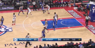 諾埃爾接隊(duì)友手遞手,內(nèi)線無視莊神的防守,單手霸氣暴扣!Dunk!