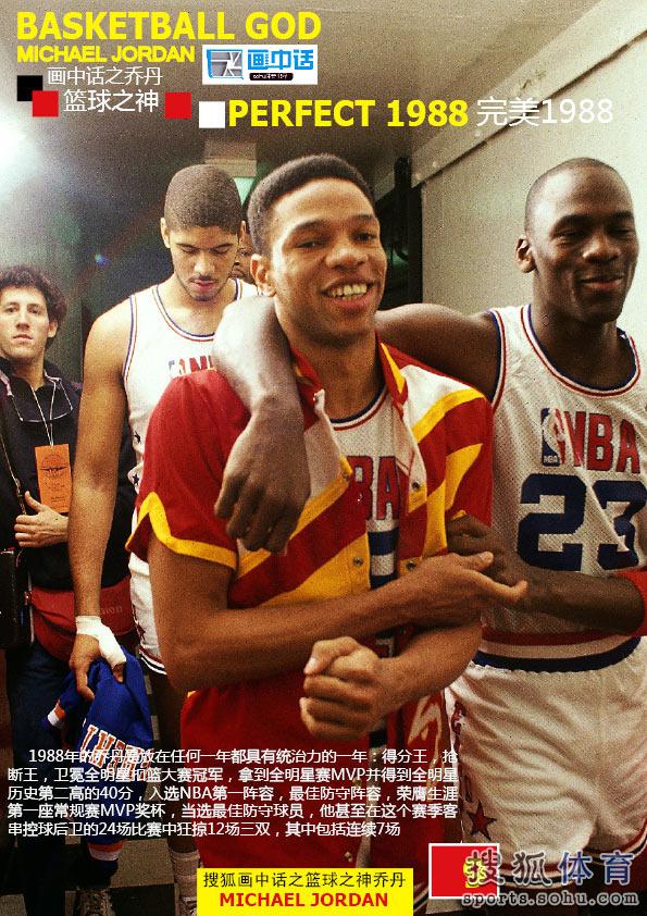 9-畫中話之籃球之神喬丹-完美1988 9.邁克爾的1988 1988年的喬丹是放在任何一年都具有統(tǒng)治力的一年:得分王,搶斷王,衛(wèi)冕全明星扣籃大賽冠軍,拿到全明星賽MVP并得到全明星歷史第二高的40分,入選NBA第一陣容,最佳防守陣容,榮膺生涯第一座常規(guī)賽MVP獎杯,當選最佳防守球員,他甚至在這個賽季客串控球后衛(wèi)的24場比賽中狂掠12場三雙,其中包括連續(xù)7場。