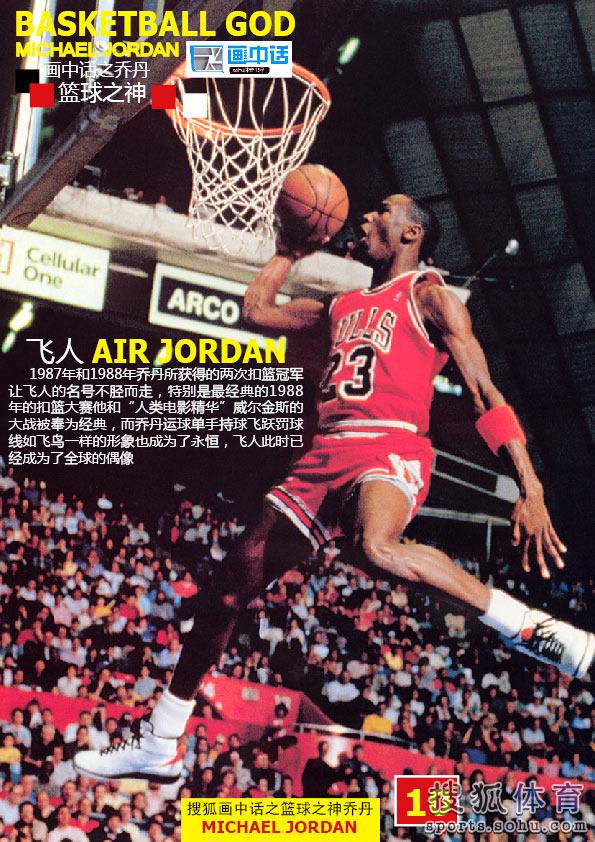 10-畫中話之籃球之神喬丹-飛人 10.飛人 1987年和1988年喬丹所獲得的兩次扣籃冠軍讓飛人的名號不脛而走,特別是最經(jīng)典的1988年的扣籃大賽他和“人類電影精華”威爾金斯的大戰(zhàn)被奉為經(jīng)典,而喬丹運球單手持球飛躍罰球線如飛鳥一樣的形象也成為了永恒,飛人此時已經(jīng)成為了全球的偶像。