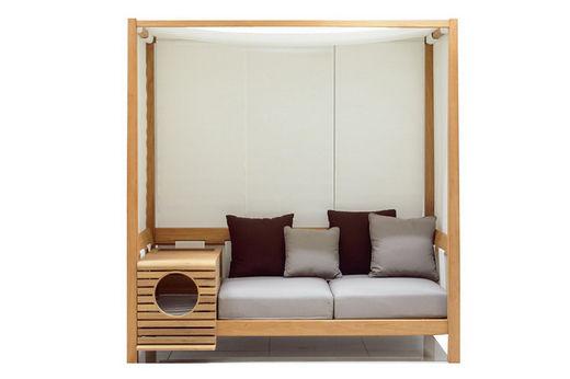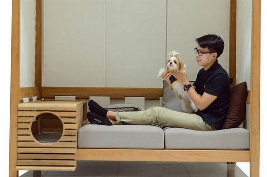 泰國品牌 Deesawat 近日推出了一款名為「Pet」的可移動(dòng)家具組合,讓人們與自己的愛寵共同分享。這款家具包含了一個(gè)供主人就坐的沙發(fā)區(qū)域和供寵物休息的小隔間,這個(gè)小隔間可以左右移動(dòng),當(dāng)然,它更能當(dāng)成茶幾,擺放小物件。