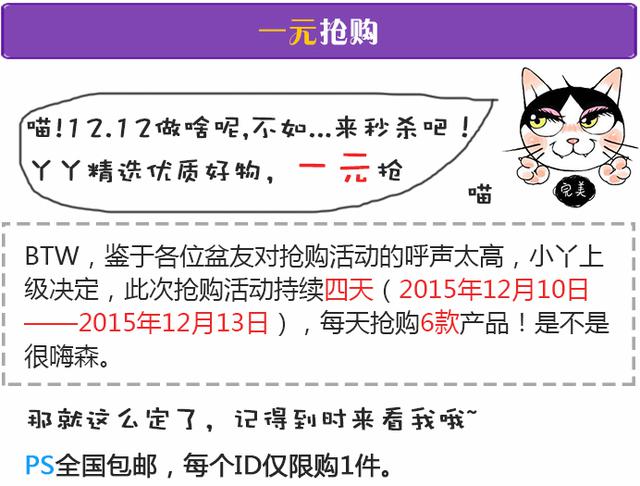 距離雙十二的到來(lái)眼看已經(jīng)不足十個(gè)小時(shí)了,你們做好了放棄睡覺(jué)和購(gòu)物車(chē)還有支付寶作斗爭(zhēng)的準(zhǔn)備了嗎!!吶,到現(xiàn)在還在迷茫的選擇恐懼癥的丫粉們,小丫特此整理了一下丫粉購(gòu)物車(chē)?yán)镏档觅I(mǎi)買(mǎi)買(mǎi)的商品,趕在<12.12>來(lái)臨之際,分享給你們,拯救一下還不在狀況的盆友!此處應(yīng)有掌聲!