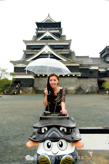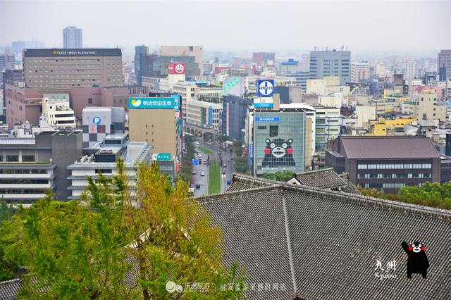 從天守閣的頂部可以眺望整個熊本城的全景。好吧,這只熊又亂入了。