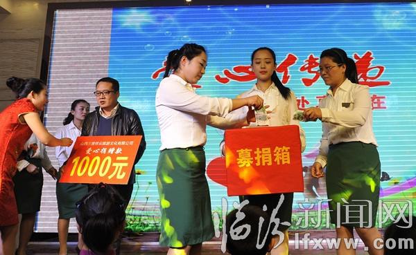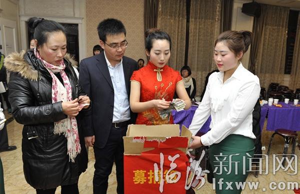 臨汾新聞網(wǎng)訊1月17日,在我市三晉祥云旅游文化有限公司,員工們在為霍州白血病患者孔菲捐款。當(dāng)日,該公司舉行了一場愛意濃濃的年會,為霍州16歲的白血病患者孔菲進(jìn)行了一場愛心募捐,同時成立了愛心志愿者服務(wù)隊,定期開展愛心幫扶,環(huán)保公益等志愿活動,活動現(xiàn)場,員工們自編自導(dǎo)了舞蹈、詩朗誦以及互動聯(lián)歡,在濃濃的愛意迎接新春的到來。 記者 閆銳鵬攝
