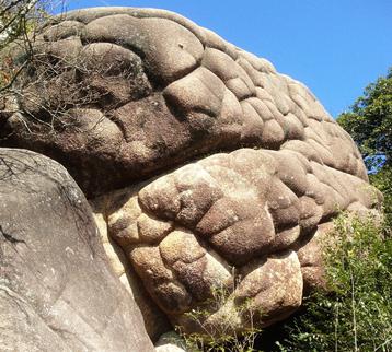 從高空俯瞰靈山,環(huán)狀花崗巖山體特征非常明顯,蜿蜒的弧度帶著濃厚的魔幻主義色彩。十億年左右的漫長歲月,靈山經(jīng)歷了數(shù)次“天崩地裂”,大小石塊剝離山體,重新堆疊到一起,形成了新的“組合”。現(xiàn)在,這種罕見的奇觀,被定義為“倒石堆地貌”,也是靈山最大的景觀特色。