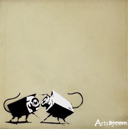 班克斯21歲的時候就放棄了自由涂鴉——有趣的是,他放棄的原因是因為覺得自己不夠好——轉(zhuǎn)而開始使用模板噴繪來創(chuàng)作具有鮮明個人美學(xué)特色的作品。這樣的作品與傳統(tǒng)的街頭噴繪形成了鮮明的對照,并且脫穎而出。