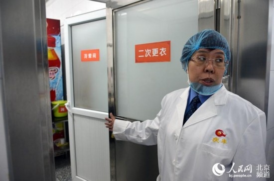 進入冷葷間,需要進行二次消毒和更衣。人民網(wǎng) 尹星云 攝