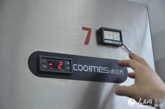 儲存生食(餡料等)智能冷柜顯示溫度-3.7℃。人民網(wǎng) 尹星云 攝