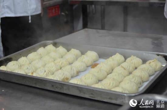包子熱騰騰的出爐,將呈上顧客的飯桌。人民網(wǎng) 尹星云 攝