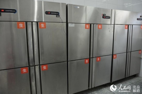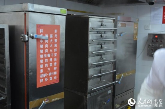 生食冷柜組有序放置從配送中心統(tǒng)一配送過來的包子餡料。人民網(wǎng) 尹星云 攝