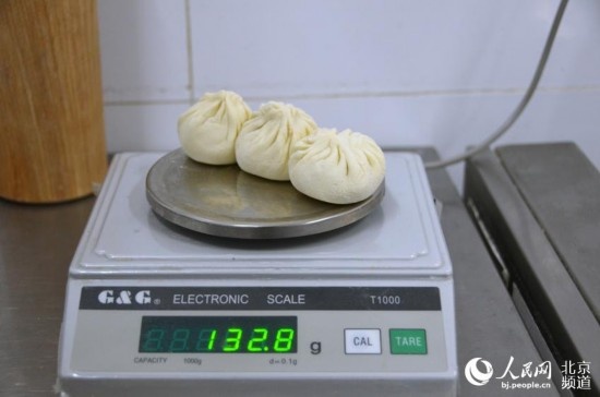 慶豐的包子按兩出售,因此,在后廚包好的包子,都要進行過稱抽查,每三個包子的重量,要在128-130克之間,低于標準值,包子將被拆重包,售出的包子保質(zhì)保量。