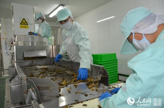 生產(chǎn)車間的第一個獨立工作間,是干菜類篩選間,一臺震動篩不停發(fā)出嗡嗡相聲,工作人員在機器的協(xié)助下,篩選梅干菜中的雜質(zhì)。振動篩表面為網(wǎng)狀,可以將香菇、木耳等干菜上附著的石沙等雜志直接篩掉。人民網(wǎng) 尹星云 攝