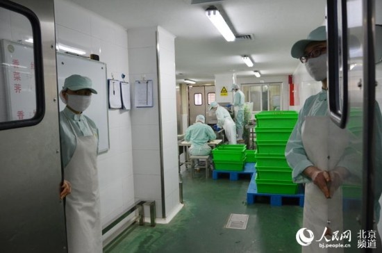 首先進入中心檢測室,檢測室負責(zé)人表示,雖然慶豐的供貨商都是知名企業(yè),所有準備進入工廠的食材也都有進貨資質(zhì)和檢驗檢測合格報告,但檢測室仍會再次檢驗肉餡的瘦肉精、重金屬鉛、蔬菜的殘留農(nóng)藥,包括是否存在地溝油等。人民網(wǎng) 尹星云 攝