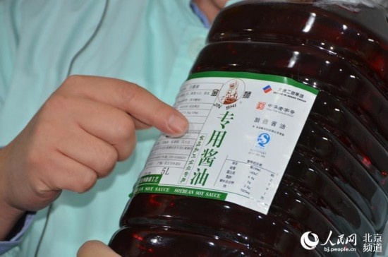 生產(chǎn)車間內(nèi),餡料的專用醬油。人民網(wǎng) 尹星云 攝