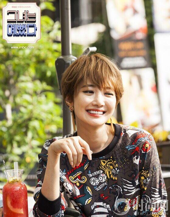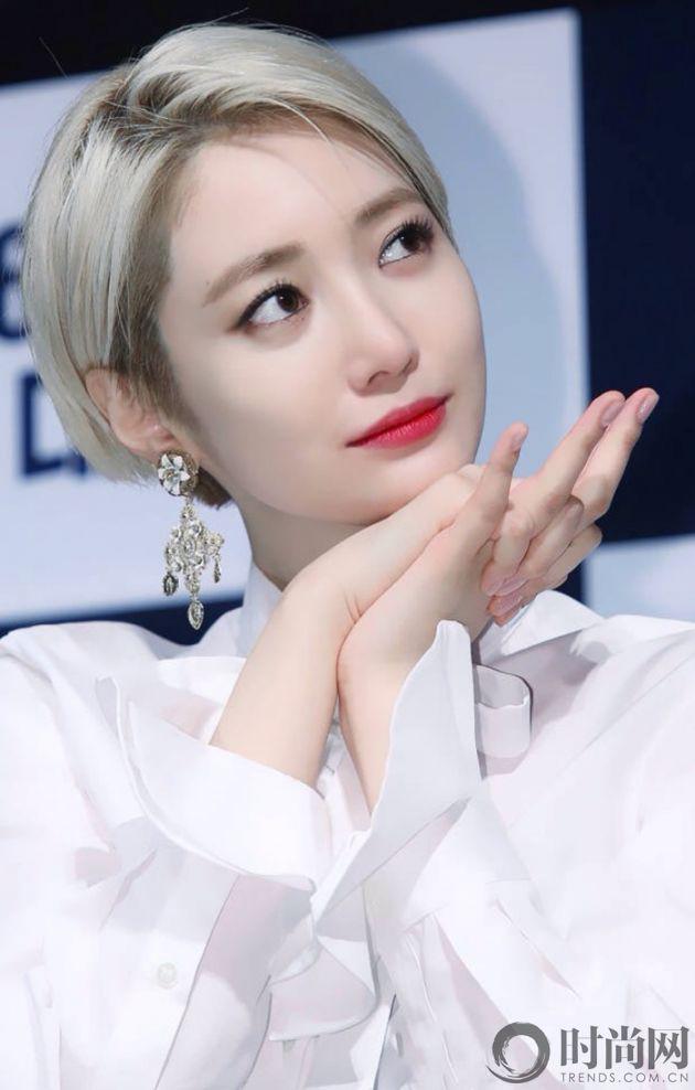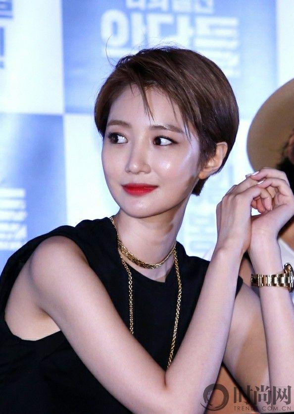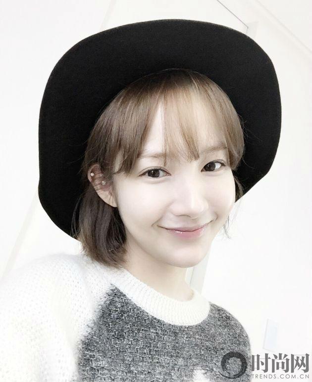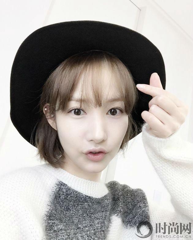 短發(fā)加上空氣劉海,顯得樸敏英更俏皮,更可愛。臉部五官更加清晰,就連雙眼睛也比長(zhǎng)發(fā)的時(shí)候顯得更圓更好看了!