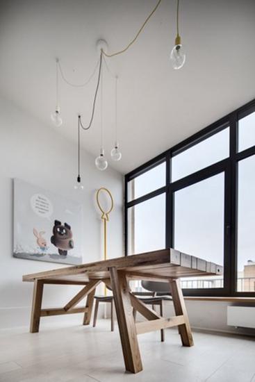如果你有個大大的公寓,如果你個性十足,那么這間現(xiàn)代公寓絕對值得一看。一面是精致的整體櫥柜,一面是斑駁的紅磚墻,如此不協(xié)調的搭配卻如此和諧的烘托出戶主的個性,于低調處見張揚。整間公寓摒棄冗雜的家具,少量的家具起到空間擴大化的作用,使得公寓更加明亮寬敞。或許你也能從這間公寓里面吸取到一些設計小靈感