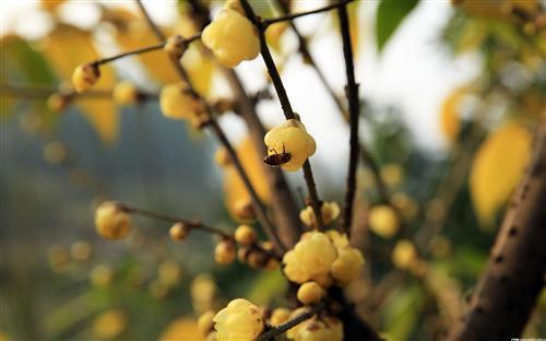 1月2日,分水嶺鎮(zhèn)大南山村的臘梅花開,一只蜜蜂在花間采蜜。