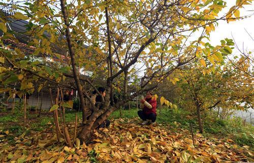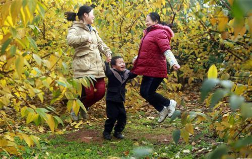 1月2日,在分水嶺鎮(zhèn)大南山村,游人在臘梅林下或采摘或拍照。