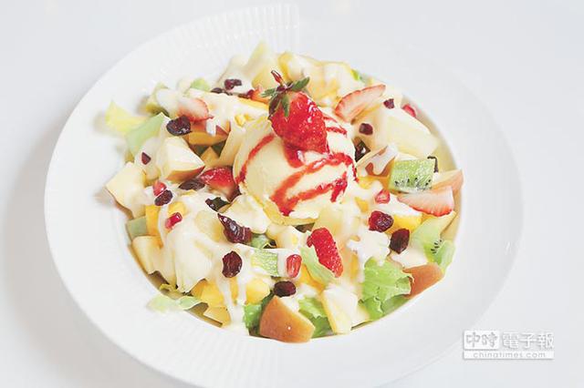 希臘優(yōu)格冰淇淋水果沙拉/280元 蔬果細細挑選、洗凈,簡單清爽滿滿原味。(張鎧乙攝)