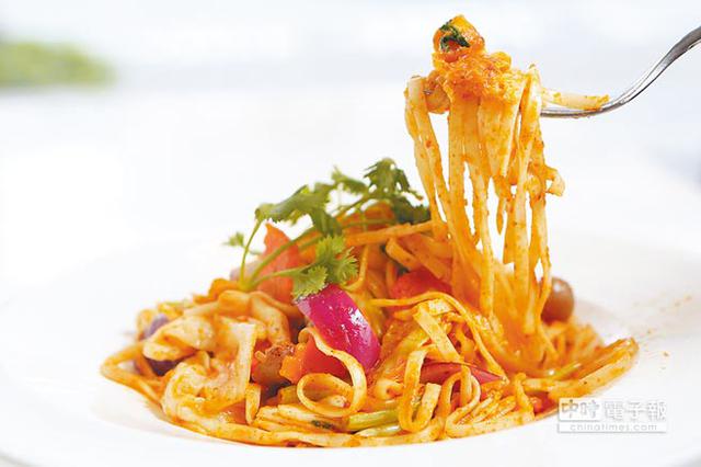 新菜色中,最讓人難忘是「泰好吃.泰味五辛麵」,它不像義大利麵輕輕拌煮,也不只是用泰式醬料涼拌,而是挑選手工制作、曬過太陽的「太陽麵」,加熱起鍋后立即丟入冰水,不靠化學(xué)添加物,卻是利用物理原理讓其產(chǎn)生Q彈口感,接著加入泰式醬料以高溫炮爐快炒,產(chǎn)生鑊氣,上桌后,看似西餐,入口后卻有著中式鑊氣靈魂與泰式滋味,很錯亂,但充滿好味。