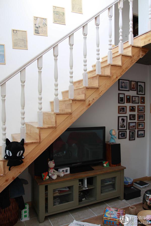 一樓二樓是用工字鋼加木板隔開的, 一樓的天花板是桑拿板,很便宜,65左右一個平米吧。 記不清了。我們自己刷了藍(lán)灰色的木蠟油。效果也不錯。