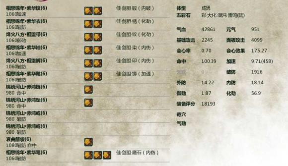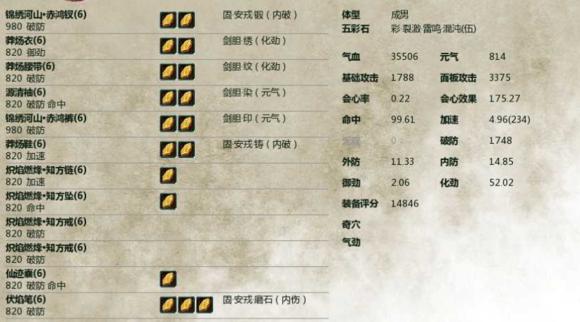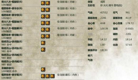 五彩石:當(dāng)前版本是命破攻/命攻破最為實(shí)用,而在樓上兩套土豪八級(jí)配裝中可以看到,命中已經(jīng)是不需要用命中五彩石來(lái)堆砌了。但是對(duì)于平民玩家來(lái)說(shuō)六級(jí)七級(jí)混搭的配裝中命中往往不夠,或者從不打本沒(méi)有辦法獲取高品破命暗器,這時(shí)候還是需要使用命中的五彩石來(lái)補(bǔ)足命中的。