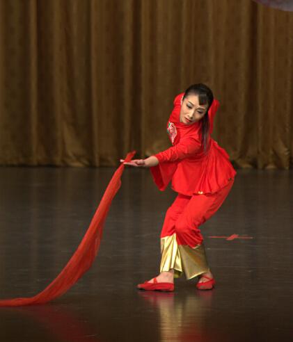 柔美的身姿舞動(dòng)起鮮紅的舞衣,伴隨著凄愴優(yōu)美的曲子《九兒》,記者仿佛親臨了電視劇《紅高粱》中的場(chǎng)景……