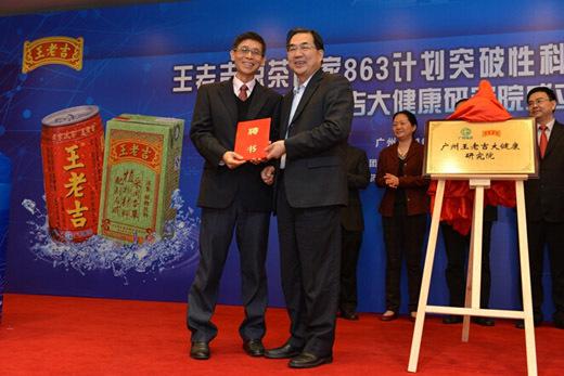 王老吉大健康產業(yè)董事長陳矛授予鄭榮波先生王老吉大健康研究院院長聘書