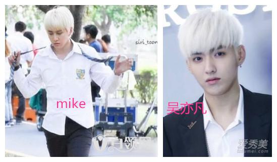 自泰版《浪漫滿屋》和《一吻定情》開播后人氣暴漲的男豬腳Mike,一頭白發(fā)像極了動漫原型,但是網(wǎng)友表示,覺得Mike和人氣小天王吳亦凡有點相像,而且兩人都有過白發(fā)造型!