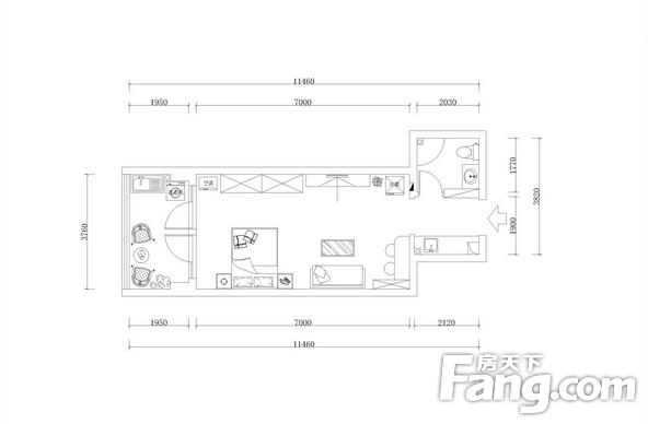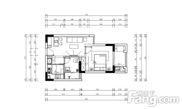 設計師理念:此戶型是單身公寓,業(yè)主是一位年輕女性,準備裝了自己住一段時間,以后給父母住,業(yè)主希望家里面簡單些,也希望客廳的空間大些。