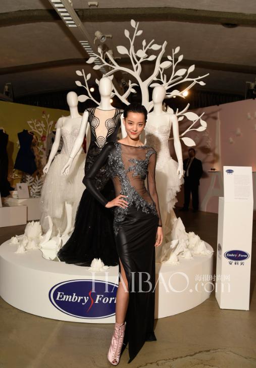 2015年2月28日,超模裴蓓身穿安莉芳 (Embry Form) 一襲黑色人魚透視長裙性感亮相“中國風(fēng)尚印象”靜態(tài)展揭幕晚宴,和安以軒、赤坂沙世等眾多明星及Elle全球45個版本的主編一起支持“中國創(chuàng)造”力量。