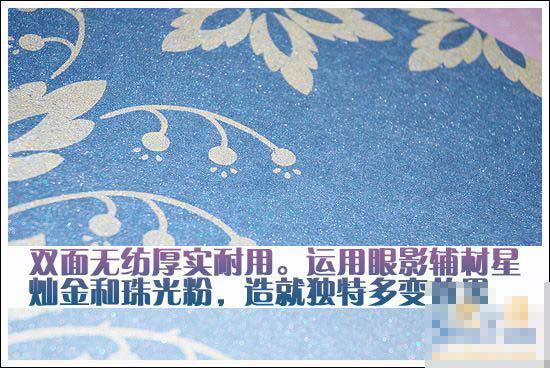 無紡材質保證了壁紙本身的通透性,雙面處理則使壁紙更加厚實耐用。靈活運用女性眼影中的輔助材料星燦金和珠光粉,造就該款壁紙獨特、多變的視覺效果。